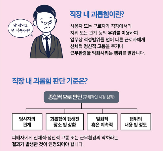 직장 내 괴롭힘은 고용주와 직원 간의 관계에서 발생할 수 있으며, 나이, 성별, 고용 형태와 관계없이 발생할 수 있다는 점이 중요해요.